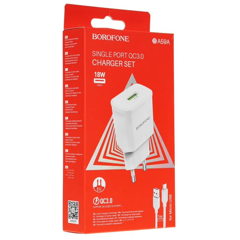 СЗУ BOROFONE BA59A 1USB 3A, QC 3.0, белый Код товара: 00-00013247