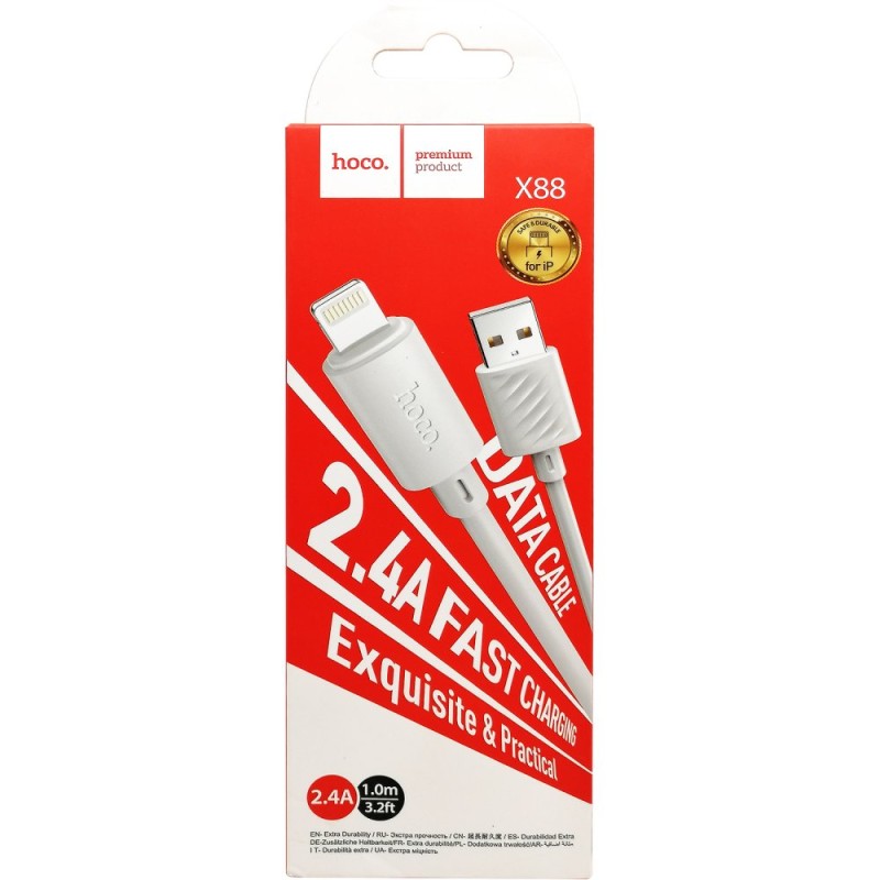 Кабель USB - Lightning 8pin, 1,0м, HOCO X88 Gratified, ПВХ, 2.4А, белый Код товара: 00-00013228