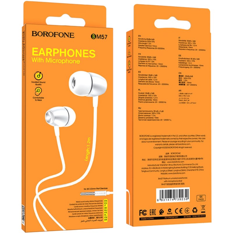 Наушники BOROFONE BM57 Platinum, Silver Код товара: 00-00013185